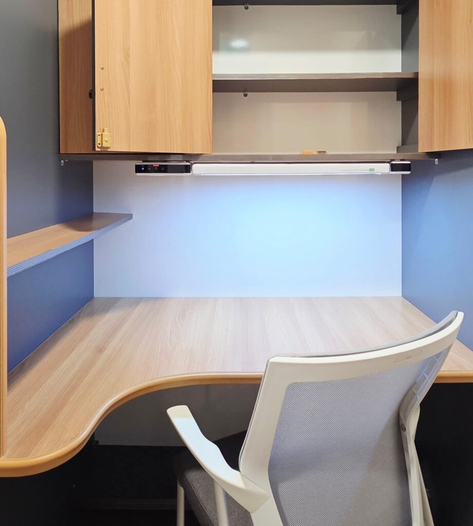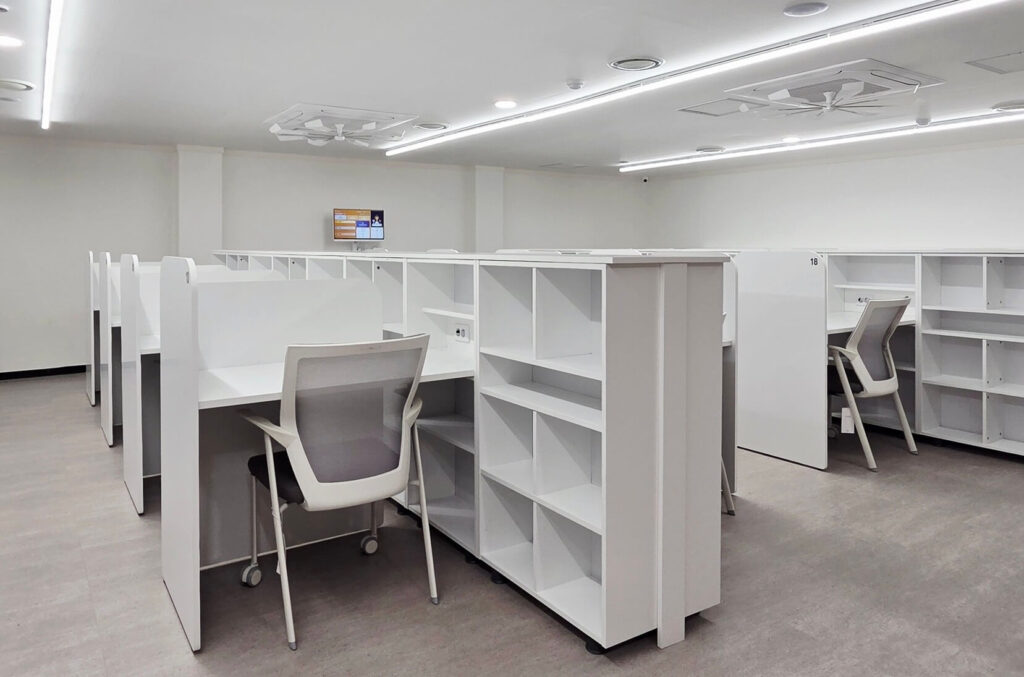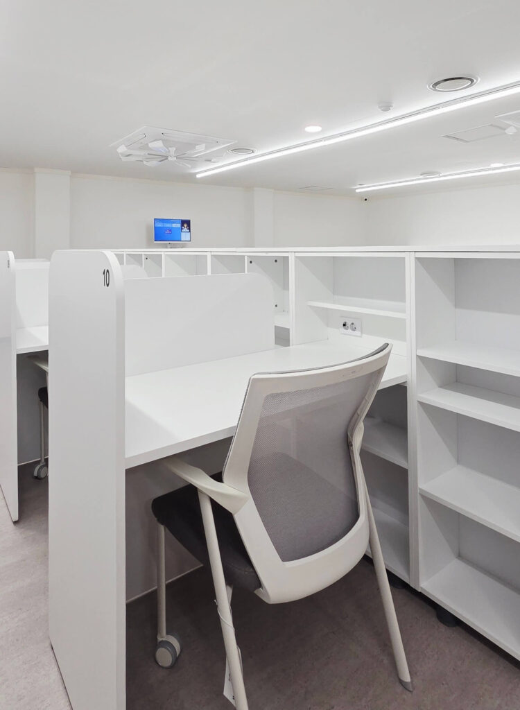 전 구역 백색소음기와 개별 조명으로 시선 · 소음을 최소화해 프라이빗한 분위기에서 공부에만 집중할 수 있습니다.